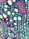 Morphology H, 10-40 cm Ecology hill and mountain zone, medium site Chorology Western North America Xylem Distinct rings, semi-ring porous porous, vessels in radial multiples, vessel diameter 20 ¿ 50µm, vessel frequency 100-200 mm2, simple perforations, siphonostele consisting on single vascular bundles, long radial strips of thin to thick-walled fibers, pervasive parenchyma, ray width 3->10 cells, exclusively square and upright ray cells, with crystal druses in the rays. Xylem-Code Phloem Distinct ray dilatations, single sclereids, without crystal druses,. Explanations For explanations please see the Feature Characteristics. | Cross section Bark | |