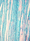 Morphology C, 10-20 cm Ecology Hill and mountain zone, dry site Chorology SW-European Xylem Distinct rings, semi-ring porous, vessels solitary and in groups, vessel diameter 20-30mµ, vessels thick walled (2mµ), simple perforation, reticulate intervessel pitting, fibers absent, pervasive parenchyma, ray width 4-7, unlignied cells, crystals absent. Xylem-Code Phloem Groups of small fiber groups arranged in tangential rows, s1mple anatomy without crystals. Explanations For explanations please see the Feature Characteristics. | Cross section Tangential section Radial section Bark | |
