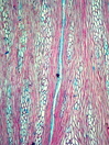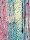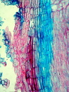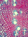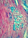 Morphology shrub, -1,5m Ecology arid zone, desert Chorology Arabian Xylem Distinct rings, diffuse porous, vessels in radial multipels, vessel diameter 20 ¿ 40 mµ, simple perforation, fibers thin to thick-walled, paratracheal parenchyma, ray width 3-8 cells, interxylary phloem with thick walled sclerenchymatic bands crystals absent. Xylem-Code Phloem Simple anatomy, without crystals. Explanations For explanations please see the Feature Characteristics. | Cross section Tangential section Radial section Bark | |