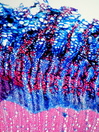 Morphology C, 10-20 cm Ecology mountain zone, dry site Chorology Andes, Athacama Xylem Distinct rings, semi-ring porous, vessels in long radial multiples, vessel diameter 20 ¿ 40µm, vessel frequency 200-400 mm2, simple perforations, fibers thin-to thick walled, paratracheal and marginal parenchyma, rays 1-3 seriate. All ray cells upright. Few prismatic crystals. Phloem With small groups of sieve cells, many groups of sclereids in radial rows, crystals absent. Explanations For explanations please see the Feature Characteristics. | Cross section Tangential section Radial section Bark | |