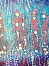 Morphology H, 100 -200 Ecology hill and mountain zone, medium site Chorology cosmopolitean Xylem Probably indistinct rings (it is not clear that rings of vascula bundles reresent annual growth rings. vessels solitary and in small groups, vessel diameter 60 ¿ 90 mµ, simple perforation, fibers thin to thick-walled, paratracheal parenchyma, ray width >10 cells, ray cells thin walled and unlignified, with cirgular rings of vascular bundles (interxylary phloem),with short rhaphides in idioblasts . Xylem-Code Phloem Simple anatomy, with short rhaphides in idioblasts. Explanations For explanations please see the Feature Characteristics. | Cross section Tangential section Bark | |