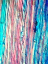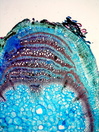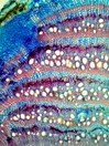 Morphology C, 10-20 cm Ecology Hill and mountain zone, dry site Chorology S-Africa Xylem Indistinct rings, vessels solitary vessel diameter 30 ¿ 50 mµ, simple perforation, minutely bordered fibers thin to thick-walled, paratracheal parenchyma, with interxylary phloem. The zones of vascular bundles form ring like bands with some irregularities. Ray mostly uniseriate, few rays with width 2-5 cells, ray cells thin walled and unlignified, with crystal druses in the parenchymatic zones between the vascular bundles. Xylem-Code Phloem Simple anatomy. Explanations For explanations please see the Feature Characteristics. | Cross section Tangential section Bark | |