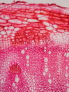 Morphology T, 20-60cm Ecology hill and mountain zone, medium site Chorology cosmopolitean Xylem Indistinct rings, vessels solitary and in short radial multiples, vessel diameter 30-50 mµ, simple perforations, intervascular pits round, paratracheal parenchyma, rays 5->10 cells, included phloem concentric with single vascular bundles, conjunctive tissue thin-walled, periferic zones with continuous xylem, with crystal sand. Xylem-Code Phloem Uniform anatomy without sieve elements, with crystal sand. Explanations For explanations please see the Feature Characteristics. | Cross section Tangential section Radial section Bark | |