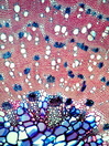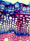 Morphology T, 20-60cm Ecology hill zone, medium site Chorology Asiatic Xylem Indistinct rings, vessels solitary and in radial multiples, vessel diameter 40-80 mµ, simple perforations, intervascular pits round, fibers thin walled, paratracheal parenchyma, rayless, included phloem concentric, continuous, conjunctive tissue unlignified and thin-walled, without crystal Xylem-Code Phloem Uniform anatomy without sieve elements, with few crystal druses. Explanations For explanations please see the Feature Characteristics. | Cross section Tangential section Radial section Bark | |