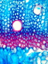 Morphology T, 20-80cm Ecology hill zone, medium site Chorology Eurasian Xylem Indistinct rings, vessels mainly solitary, vessel diameter 30-50 mµ, simple perforations, intervascular pits round, fibers thin to thick-walled, paratracheal parenchyma, ray width 5-7 cells, included phloem concentric, continuous, conjunctive tissue unlignified and thin-walled, without crystals Xylem-Code Phloem Uniform anatomy without sieve elements, with crystal druses. Explanations For explanations please see the Feature Characteristics. | Cross section Tangential section Radial section Bark | |