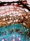 Morphology T, 50-100cm Ecology subtropical, thermophile zone, medium site Chorology Macaronesian Xylem Indistinct rings, vessels mainly solitary, vessel diameter 40-60 mµ, simple perforations, intervascular pits round, fibers thin to thick-walled, paratracheal parenchyma, ray width 4-9 cells, included phloem concentric, continuous, conjunctive thin-walled, with much crystal sand, mostly in idioblasts.. Xylem-Code Phloem Uniform anatomy without sieve elements, with much crystal sand in idioblasts Explanations For explanations please see the Feature Characteristics. | Cross section Tangential section Bark | |