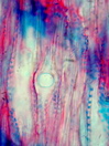 Morphology T, -10cm prostrate Ecology hill zone, dry site Chorology S.Europ/W.Asiatic Xylem Only one ring, vessels solitary and in radial multiples, vessel diameter 15-40mµ, simple perforations, intervascular pits round, fibers thin to thick-walled, paratracheal parenchyma, ray width 1-3 cells, included phloem absent, crystals absent. Xylem-Code Phloem Uniform anatomy without sieve elements, without crystals Explanations For explanations please see the Feature Characteristics. | Cross section Tangential section Radial section | |