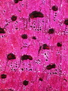 Morphology dwarf shrub 40cm Ecology desert, dry site Chorology SW-European Xylem Indistinct rings, vessels mainly in groups, vessel diameter 40-60 mµ, simple perforations, intervascular pits round, fibers thick-walled, paratracheal parenchyma, rayless, included phloem diffuse, , with small isodiametric crystals. Xylem-Code Phloem Slide missing Explanations For explanations please see the Feature Characteristics. | Cross section Tangential section Radial section | |