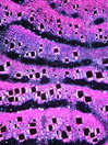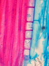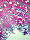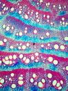Morphology shrub, 1m Ecology mediterranean, coast Chorology SW-mediterranean, Macaronesian Xylem Indistinct rings, partially to recognize, vessels mainly in groups, vessel diameter 50-110 mµ, simple perforations, intervascular pits round, fibers thin to thick-walled, paratracheal parenchyma, ray width 1-3 cells or rays missing, included phloem concentric, continuous, with crystal sand. Xylem-Code Phloem Uniform anatomy without sieve elements, without crystals Explanations For explanations please see the Feature Characteristics. | Cross section Tangential section Radial section | |