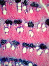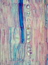 Morphology dwarf shrub 40cm Ecology mediterranean dry site Chorology Macaronesia, mediterranean Xylem Indistinct rings, vessels mainly in groups, vessel diameter 40-50 mµ, vessels thick-walled, simple perforations, intervascular pits round, fibers thick-walled, paratracheal parenchyma, rayless, included phloem concentric, continuous, with isodiametric crystals. Xylem-Code Phloem Uniform anatomy without sieve elements, without crystals Explanations For explanations please see the Feature Characteristics. | Cross section Radial section Bark | |