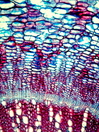 Morphology T, 10-30cm Ecology subtropical Chorology Macaronesian Xylem Only one ring, in long radial multiples, vessel diameter 40-70 µm, simple perforations, with thin-walled tylosis, round inter-vessel pits, fibers thin to thick-walled, scanty paratracheal parenchyma, rayless crystal druses in ray cells. Xylem-Code Phloem Indistinct tangential layers of sieve cells, radial rows of parenchyma cells, with few crystal druses. Explanations For explanations please see the Feature Characteristics. | Cross section Radial section Bark | |