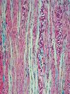 Morphology Dwarf shrub 40-60cm Ecology Coast, saline site, Chorology Mediterranean, W-European Xylem Distinct rings, semi-ring porous, vessels solitary, vestured pits, tangential bands with thick walled fibers, paratracheal parenchyma, thin walled marginal parenchyma, rayless in cross-section, rayless. Xylem-Code Phloem No tangential layers of collapsed sieve cells, radial rows of parenchyma cells, distinct ray dilatations, groups of sclereids in phloem. Remarks Cross section: Explanations For explanations please see the Feature Characteristics. | Cross section Tangential section Radial section Bark | |