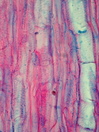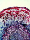 Morphology T, 10-30cm Ecology hill and mountain zone, medium site Xylem Only one ring, in radial multiples and radial groups, rays sometimes absent, vessel diameter 30-50 µm, simple perforations, round inter-vessel pits, fibers thin to thick-walled, parenchyma not to recognize, ray width 2-4 cells with upright cells, crystal druses absent. Xylem-Code Phloem With groups of sieve cells, indistinct tangential rows of sieve cell groups, radial rows of parenchyma cells, crystals absent. Explanations For explanations please see the Feature Characteristics. | Cross section Tangential section Radial section Bark | |