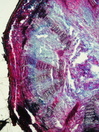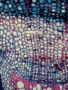 Morphology H, 20-50 cm Ecology Mountain and subalpine, medium site Chorology Rocky mountains Xylem Distinct rings, semi-ring porous, in groups, vessel diameter 40-60 µm, simple perforations, round and scalariform intervessel pits, fibers in groups, mostly thick-walled, parenchyma pervasive in earlywood, rays very large, vascular bundle remaining, crystals absent. Xylem-Code Phloem Simple construction, tangential rows of sieve cells, without crystal druses. Explanations For explanations please see the Feature Characteristics. | Cross section Tangential section Radial section Bark | |