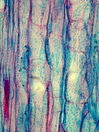 Morphology T, 10-30cm Ecology hill and mountain zone, medium site Chorology Mediterranean Xylem Only one ring, vessels solitary and in radial multiples, vessel diameter 30-50 µm, simple perforations, with thin-walled tylosis, round inter-vessel pits, fibers thin-to thick-walled, paratracheal parenchyma, rays absent, crystals absent. Xylem-Code Phloem Simple construction, radial rows of parenchyma cells, indistinct groups of sieve cells. Explanations For explanations please see the Feature Characteristics. | Cross section Tangential section Radial section Bark | |