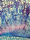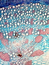Morphology H, 20-50 cm Ecology Mountain and subalpine, medium site Chorology Euro-Siberian Xylem Distinct rings, diffuse and semi-ring porous, vessels solitary and in groups, vessel diameter 40-70 µm, simple perforations, round intervessel pits, fibers in groups, thick-walled, parenchyma pervasive in earlywood, paratracheal in latewood, rays very large, vascular bundle remaining, crystals druses in inter fascicular parenchyma. Xylem-Code Phloem Simple construction, tangential rows of sieve cells, with crystal druses. Explanations For explanations please see the Feature Characteristics. | Cross section Bark | |