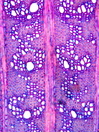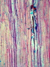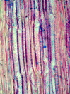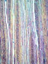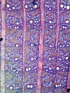 Morphology shrub, - 1 m Ecology hill zone, dry site Chorology SW-N-American Xylem Distinct rings, diffuse and semi-ring porous, vessels in oblique, radial patterns, simple perforations, spiral thickenings, earlywood vessel diameter 15 - 30µm, fibers thin to thick-walled, parenchyma absent or not to recognize, ray width 2-3 cell, ray cells mostly square, , ray height >1mm. Prismatic crystals in rays Xylem-Code Phloem Tangential layers of collapsed sieve cells, tangential groups of sclerenchymatic cells, annual? tangential cracks, tangential rows of prismatic crystals, prismatic crystals also in rays. Explanations For explanations please see the Feature Characteristics. | Cross section Tangential section Radial section Bark | |
