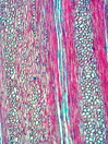 Morphology shrub, - 1 m Ecology hill and mountain zone, medium site Chorology China, Japan Xylem Distinct rings, semi-ring porous, vessels in radial patterns, simple perforations, spiral thickenings, earlywood vessel diameter 40 - 60µm, fibers thin to thick-walled, parenchyma absent or not to recognize, ray width >10 cell, ray cells mostly square, , ray height >1mm, pr. Crystals absent Xylem-Code Phloem Tangential layers of collapsed sieve cells, sclerenchymatic cells in tangential rows, annual? tangential cracks, with ray dilatations, crystals absent Explanations For explanations please see the Feature Characteristics. | Cross section Tangential section Radial section Bark | |