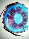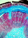 Morphology H, 20-40 cm Ecology hill and mountain zone, medium site Chorology Western North America Xylem Distinct rings, semi-ring porous, vessels in radial multiples and in groups, simple perforations, intervessel pits scalariform, earlywood vessel diameter 15 - 30µm, fibers thin to thick-walled, parenchyma absent or not to recognize, rays absent, (large rays are probably lateral shoots) crystals absent. Xylem-Code Phloem Tangential layers of collapsed sieve cells, crystals absent. Explanations For explanations please see the Feature Characteristics. | Cross section Tangential section Radial section | |