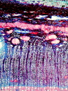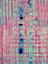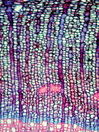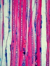 Morphology shrub, 1-2m Ecology hill and mountain zone, medium site Chorology Eastern North Amnerica Xylem Distinct rings, diffuse porous, vessels solitary, often with slightly angular circumference, scalariform perforations with >10bars, intervessel pits round and scalariform (gash-like), fibers thin to thick-walled, with distinctly bordered, round pits, parenchyma absent or seldom apotracheal, rays uniseriate , heterocellular with 1 square or upright cells or homocellular. With few prismatic crystals. Xylem-Code Phloem Phloem with sieve cells, few round groups of sclerenchyma cells. Cortex with a continuous band of sclerenchyma. With prismatic crystals. Explanations For explanations please see the Feature Characteristics. | Cross section Tangential section Radial section Bark | |
