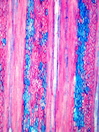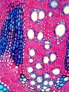 Morphology H, 1 m hanging Ecology tropical Chorology India Xylem Without rings, vessels solitary, simple perforations, fibers thin-to thick-walled, with Septate fibers, with small slit-like pits, parenchyma paratracheal, around the whole vessel, rays >10 cells, vascular bundle form remaining, all ray cells upright, thin-walled. Pith surrounded by a wavy belt of fibers. With medullary vascular bundles and medullary secretory canals. Xylem-Code Phloem Half-moon like phloem groups, with few sclerenchyma cells at the outside of the radial fiber-vessel strips, parenchyma and cortex cells filled with fine crystal sand. Unicellular canals in the phloem Explanations For explanations please see the Feature Characteristics. | Cross section Tangential section Radial section Bark | |