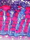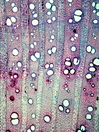 Morphology shrub, 1-2 m Ecology Mountain and subalpine, medium site Chorology Eurasian Xylem Distinct rings, ring porous, vessels solitary, simple perforations, intervessel pits round, with gum deposits, fibers thin to thick-walled, paratracheal and terminal parenchyma, ray width 4-6 cells, heterocellular with 1 upright cells. Storied parenchyma and fibers, With prismatic crystals. Xylem-Code Phloem Distinct ray dilatations, much more or less rectangular groups of sclerenchyma, arranged in tangential and radial direction in the phloem. Round groups of sclerenchyma in the cortex. Without crystals. Explanations For explanations please see the Feature Characteristics. | Cross section Tangential section Radial section Bark | |