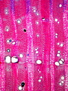 Morphology tree 4 m Ecology arid zones, salt tolerant Chorology Africa, middle East Xylem Distinct rings, ring porous, vessels solitary and in groups, simple perforations, intervessel pits round, fibers thin to thick-walled, paratracheal and marginal parenchyma, ray width >10 cells, homocellular with procumbent cells. Storied parenchyma and fibers and vessels, with few prismatic crystals in rays. Xylem-Code Phloem Sieve cells between parenchyma cells. They are compressed in older rings. Half-moon-like groups of sclerenchyma, arranged in tangential direction in the phloem. Rays sclerotisised with annual? gaps. Crystals absent. Phellogen gets active after two years. Explanations For explanations please see the Feature Characteristics. | Cross section Tangential section Bark | |