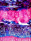 Morphology tree, 5m Ecology hill and mountain zone, medium site Chorology SE-Asia Xylem Conifer like wood but with large rays. Distinct ring boundaries, vessels absent, tracheids with big round bordered pits and scalariform bordered pits. Parenchyma very rare and not to recognize in the cross-section. Uniseriate and multiseriate (3 to 6 cells in width) heterocellular rays with 1 to 3 square and upright marginal cells. Crystals absent. Xylem-Code Phloem Phloem simple structured. Sieve cells collapse in older parts of the phloem. Distinct ray dilatations and a belt of sclereids in the cortex. Explanations For explanations please see the Feature Characteristics. | Cross section Tangential section Radial section Bark | |