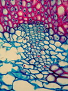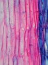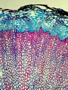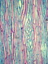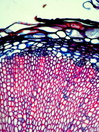 Morphology T, 10-40 cm Ecology hill zone Chorology Eurasian Xylem Only one ring, vessels not distinguished from ground tissue in cross-section, vessels with simple perforations, many living fibers (with nuclei), parenchyma not to recognize, ray width 2-3 cells, often confluent with axial tissue, ray cells exclusively square and upright. without crystals Xylem-Code Phloem Sieve cell groups between big parenchyma cells. Explanations For explanations please see the Feature Characteristics. | Cross section Tangential section Radial section Bark | |