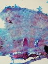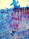 Morphology H, 20-40 cm Ecology Mountain and subalpine, medium site Chorology Eurasian, N-American Xylem Rings indistinct, vessels solitary and in groups, vessel diameter 15-30 µm, vessels with simple perforations and small scalariform pits, fibers absent or living fibers , parenchyma pervasive, vascular bundles rayless, very large rays (extrusions from the pith) between the bundles, ray cells exclusively square and upright. Xylem-Code Phloem Groups of tangentially arranged sieve cells in a thin walled parenchymatic tissue. Explanations For explanations please see the Feature Characteristics. | Cross section Radial section | |