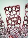 Morphology liana Ecology mediterranean Chorology S-Europ. Xylem Distinct rings ring-porous to semi-ring porous, form of vascular bundles remaining, vessels solitary and in groups, earlywood vessel diameter 90-150µm, fiberes rare, fibers with distinct big (3 µm) round, bordered pits, fibers storied, simple perforations, round intervascular pits, parenchyma paratracheal, apotracheal and marginal?, vascular bundles rayless, sometimes with secondary rays, very large rays between the bundles. Xylem-Code Phloem Slide missing Explanations For explanations please see the Feature Characteristics. | Cross section Radial section | |