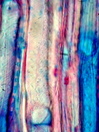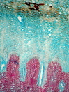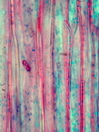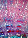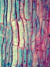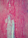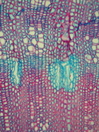 Morphology H, 20-50 cm Ecology hill and mountain zone dry site Chorology SW-European Xylem Distinct rings, indistinct remaining vascular bundles, semi-ring porous, vessels in long radial multiples, earlywood vessel diameter 20-40 µm, simple perforations, locally with fine spiral thickenings, fibers with small pits, marginal groups at the external side of each xylem of the vascular bundle, round intervascular pits, parenchyma hardly to recognize, vascular bundles rayless, very large rays between the bundles. Rays with irregular cells, rays often confluent to the fiber tissue. Very thin walled, unlignified marginal groups of ray parenchyma cells. Keilwuchs. Xylem-Code Phloem Phloem with groups of sieve cells, distinct ray dilatations. Explanations For explanations please see the Feature Characteristics. | Cross section Tangential section Radial section Bark | |