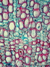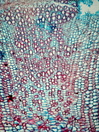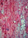Morphology H, 10-40 cm Ecology subalpine, alpine, medium site Chorology Alps Xylem Stem mostly fluted. Parts of the stem get laterally isolated and form a radial oriented strip. Distinct and indistinct rings, remaining vascular bundles, semi-ring porous and diffuse porous, vessels solitary and in small groups, vessels thick walled with round intervessel pits, vessel diameter 30-50 µm, simple perforations, fibers absent, parenchyma pervasive, Rays absent inside vascular bundles, between them very large rays with thin-walled, unlignified cell walls. Xylem-Code Phloem With sieve-cell groups, mostly in tangential rows. Few cornels of crystal sand. Explanations For explanations please see the Feature Characteristics. | Cross section Tangential section Radial section Bark | |