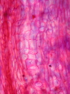 Morphology H, 10-20cm Ecology subalpine Chorology Rocky mountains Xylem Secondary growth absent. Single vascular closed bundles arranged around the pith. Vessels in groups, vessel diameter <20 µm, perforations simple, intervessel pits round to mostly slit-like or scalariform, fibers absent, parenchyma pervasive, rays absent inside vascular bundles, between them very large rays with thin-walled, unlignified cell walls. Xylem-Code Phloem Mostly uniform, sometimes with a few smaller sieve-cells Explanations For explanations please see the Feature Characteristics. | Cross section Radial section Bark | |