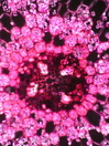 Morphology H, 10-20cm Ecology hill and mountain zone, medium site Chorology W-European Xylem Bulb. Secondary growth absent. Central tetrarch stele. Vessels in groups, vessel diameter <20 µm, perforations simple, intervessel pits round to slit-like, fibers absent, parenchyma pervasive, rays absent Xylem-Code Phloem Mostly uniform. External border of the cortex with smaller cells. Explanations For explanations please see the Feature Characteristics. | Cross section | |