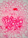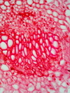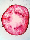 Morphology H, 10-20cm Ecology subalpine, alpine, medium site Chorology arctic-alpine Xylem Secondary growth absent. Single vascular closed bundles arranged around the pith. Vessels in groups, vessel diameter <20 µm, perforations simple, intervessel pits round to mostly slit-like, fibers absent, parenchyma pervasive, rays absent inside vascular bundles, between them very large rays with thin-walled, unlignified cell walls. Xylem-Code Phloem Mostly uniform, sometimes with a few smaller sieve-cells Explanations For explanations please see the Feature Characteristics. | Cross section Bark | |