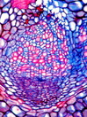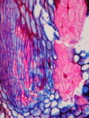 Morphology H, 10-20cm Ecology Mountain and subalpine, medium site Chorology Alps Xylem Secondary growth absent. Single vascular closed bundles arranged around the pith. Vessels in groups, vessels thick walled, vessel diameter <20 µm, perforations simple, intervessel pits round to mostly slit-like, fibers absent, parenchyma pervasive, rays absent inside vascular bundles, between them very large rays with thin-walled, unlignified cell walls. A few groups of sclereids at the pith side of vascular bundles. Xylem-Code Phloem Mostly uniform, sometimes with a few smaller sieve-cells Explanations For explanations please see the Feature Characteristics. | Cross section Radial section | |