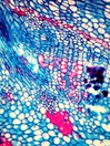 Morphology H, 10-20cm Ecology hill and mountain zone, medium site Chorology European mountain Xylem Secondary growth absent. Single vascular closed bundles arranged around the pith. Vessels in groups, vessel diameter <20 µm, perforations simple, intervessel pits round to mostly slit-like, fibers absent, parenchyma pervasive, rays absent inside vascular bundles, between them very large rays with thin-walled, unlignified cell walls. A few groups of sclereids at the pith side of vascular bundles. Xylem-Code Phloem Mostly uniform, sometimes with a few smaller sieve-cells Explanations For explanations please see the Feature Characteristics. | Cross section | |