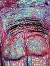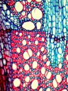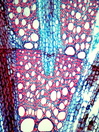 Morphology liana 3m Ecology hill and mountain zone, medium site Chorology Eastern North America Xylem Distinct rings, ring porous, vessels solitary, vessel diameter 150-200mµ, simple perforation at the axial ends, round, partially with scalariform intervessel pitting, with few tylosis, fibers thin to thick-walled, fibers with bordered pits with slit-like apertures, parenchyma apotracheal and partially mariginal, vascular bundle form remaining but with secondary rays, rays very large, locally with sheet cells, ray cells unlignified with square cells. With crystal druses. Xylem-Code Phloem Phloem simple structured. Tangential layers of collapsed cells, distinct ray dilations. Cortex with fragments of an earlier sclerenchymatic belt. Fiber tracheids in the cortex. Thick phellem. Explanations For explanations please see the Feature Characteristics. | Cross section Tangential section Radial section Bark | |