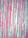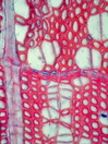 Morphology tree 12 m Ecology hill and mountain zone, medium site Chorology E- North America Xylem Distinct rings, diffuse porous, vessels in radial rows of 2-6 and solitary, earlywood vessel diameter 40 - 60mµ, fibers with small unbordered pits with slit-like apertures (libiriform fibers), vessel frequency 80-150 mm2, intervessel pits scalariform, simple perforations, parenchyma marginal and apotracheal (rare), ray width 2-3 cells, rays homogeneus, cells procumbent and square, vessel ray pits round to oval in horizontal rows. Xylem-Code Phloem Distinct tangential layers of thick-walled fibers and sieve cell/parenchyma. With ray dilatations. Groups of sclereids in the phloem and the cortex. With oil cells in the cortex and at the pith border. Explanations For explanations please see the Feature Characteristics. | Cross section Tangential section Radial section Bark | |