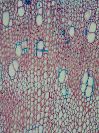 Morphology H,T, 20-90cm Ecology Foothills, montane medium sites Chorology Eurasian Xylem Only one ring, vessels in radial multiples, tangential rows of vessels, tangential bands with thick walled fibers, paratracheal parenchyma, rayless in cross-section. Xylem-Code Phloem Tangential layers of collapsed sieve cells radial rows of parenchyma cells, distinct dilatations, and small groups of sclereids in primary bark. Remarks Cross section: Explanations For explanations please see the Feature Characteristics. | Cross section Tangential section Bark | |