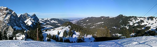 The area has one of the highest precipitation levels in Switzerland. The annual precipitation shows an increase from north to south, averaging 1723 mm/year at the MeteoSchweiz station in Einsiedeln (911 m a.s.l.) and 2266 mm/year at the Erlenhöhe meteorological station (1210 m a.s.l.). There is also an altitudinal gradient in mean annual air temperature, from 6.7 °C in Einsiedeln to 5.7 °C at Erlenhöhe. A continuous snow cover of up to 2 m thickness usually forms from December to April, but at lower elevations (< 1300 m a.s.l.) rain also falls regularly in winter, which can lead to intermittent snow-free periods.