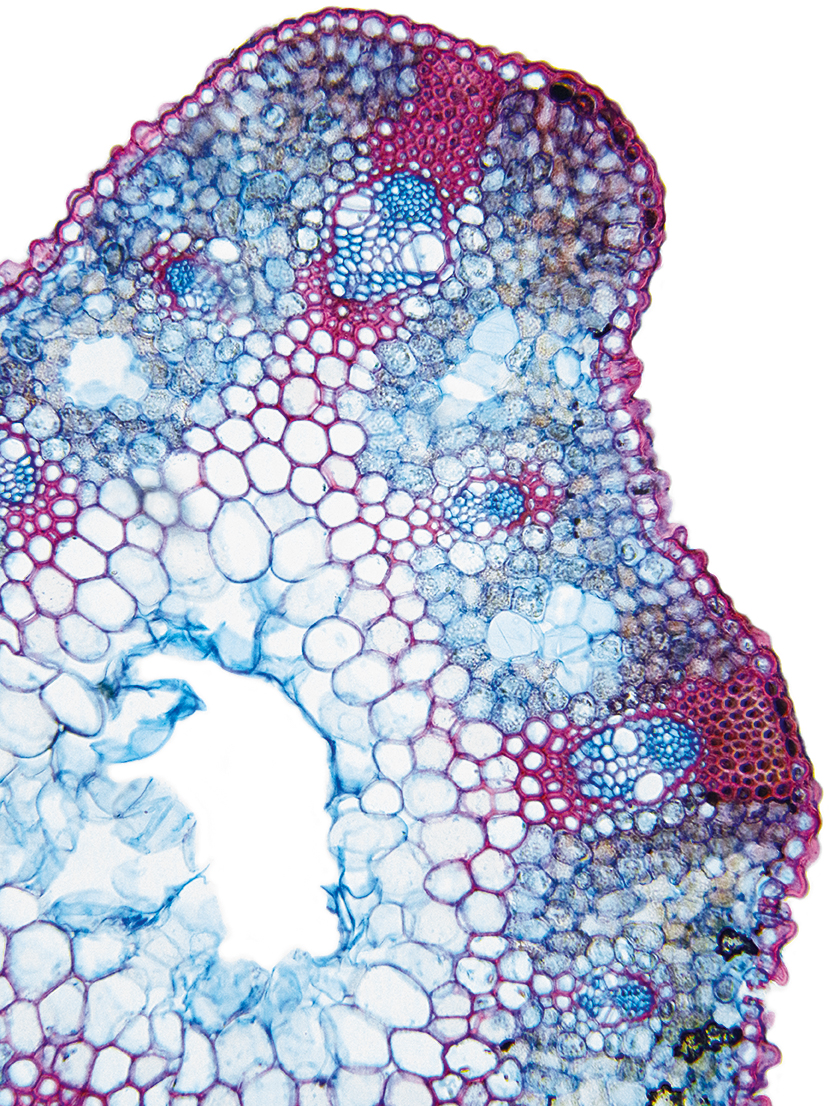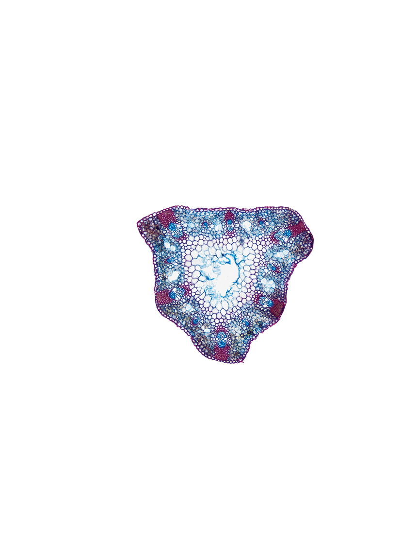 Culm-diameter 0.5-1 mm, wall very large, radius of culm in relation to wall thickness approximately 1: 0.75. Otline triangular, obtusely. Culm-center hollow and surrounded by a few thin-walled, not lignified cells. Center with net-like aerenchyma (stellat