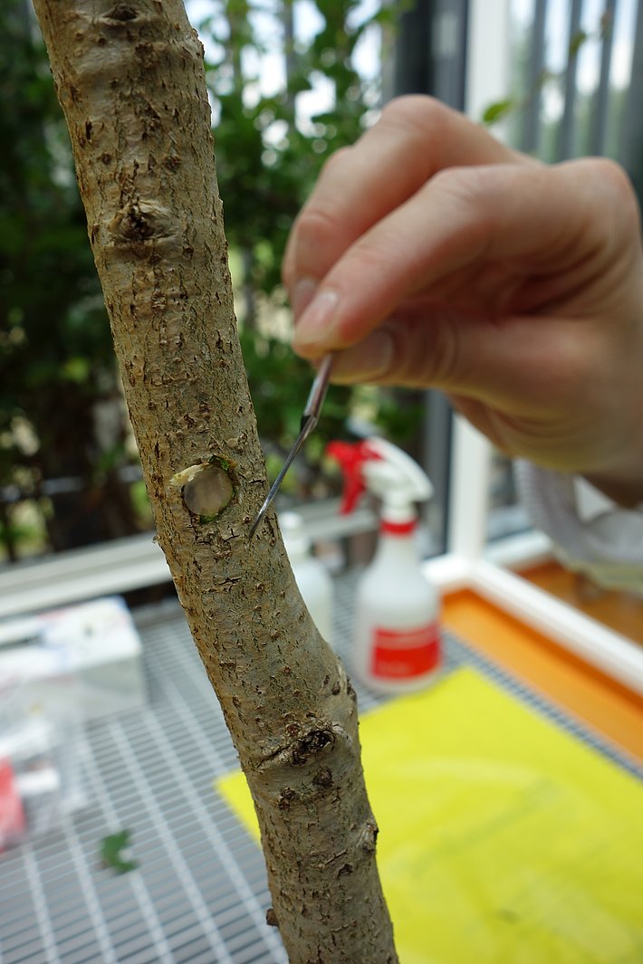 Inoculation of Cryphonectria radicalis on wood blocks in the lab.