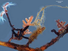 Fungi decompose dead organic matter like wood, leaves and needle litter, and thereby keep the nutrient cycle going. In the root zone, as mycorrhizal fungi they help almost all higher plants to absorb water and nutrients, even our forest trees.