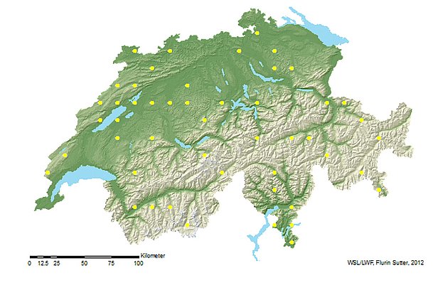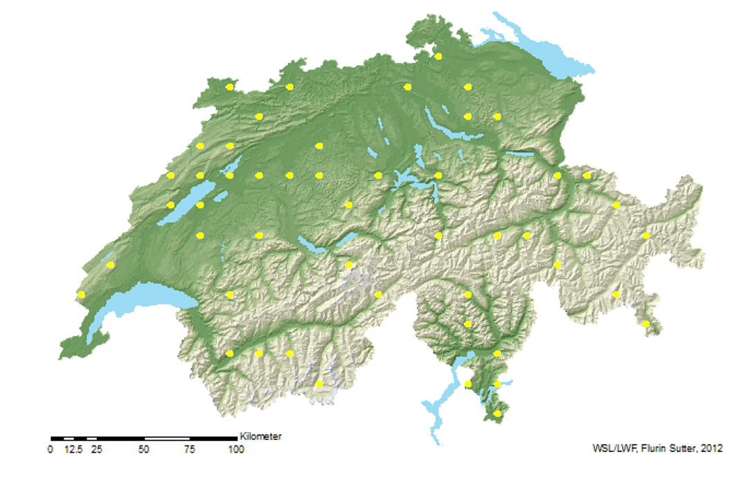 Every summer, we examine 1,100 trees in Swiss forests – not under a magnifying glass, but with binoculars – and check in particular if their crown colour and density are "normal". These trees grow on 50 sample plots that are part of the Sanasilva Inventory created in 1985.
