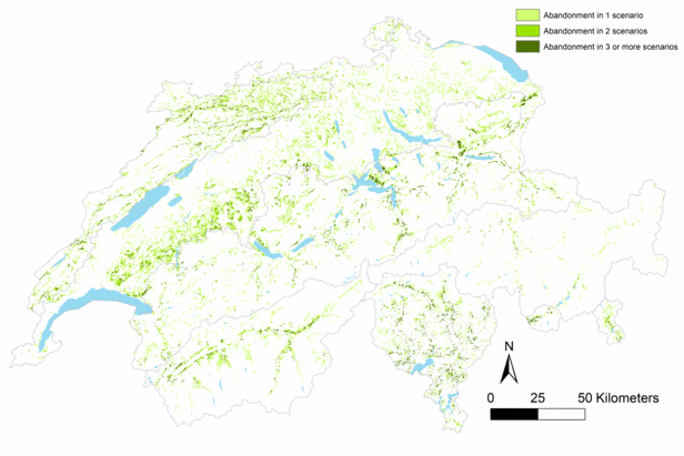 Switzerland features a high diversity of land uses within agricultural areas, forests, settlements and more natural habitats. Strong topographic gradients and varying land use intensities provide additional diversity. We study the causes and consequences of past and future land-use patterns for society and ecosystems by accounting for local, regional as well as global drivers of change. Our work serves as an important basis for decision-making for various stakeholders.