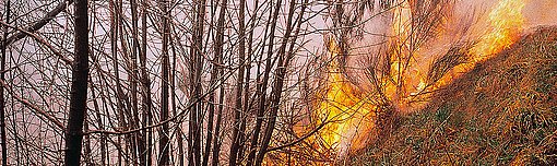 Forests in Switzerland burn most frequently on the southern side of the Alps, i.e. in Ticino and in the south-facing Grisons valleys - typically in spring. At this time, it is driest there, there is often a foehn and the deciduous trees do not yet have any leaves to protect the ground from the drying rays of the sun.