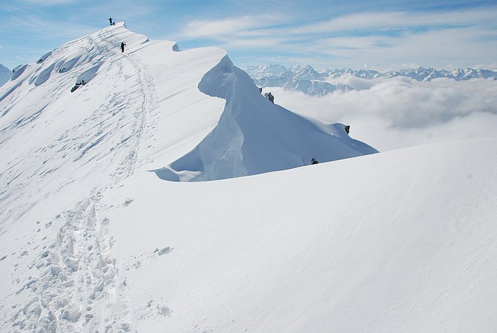 Snow cornices may be a popular subject for photos, but they are treacherous. They can break off, dragging hikers, mountaineers and backcountry skiers down with them. Occasionally they even trigger avalanches. To better assess the hazards they pose, SLF researchers carried out laboratory testing to determine the conditions under which cornices form.