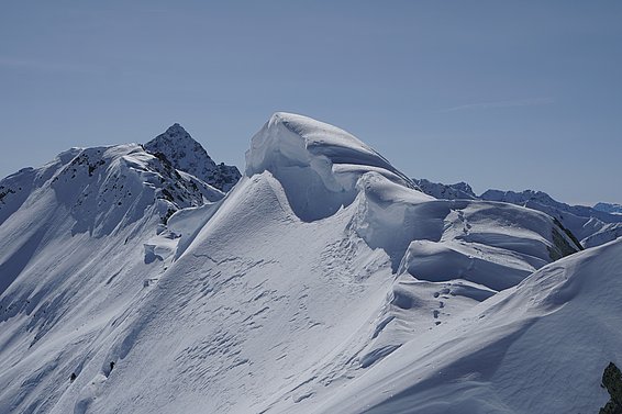 "Moderate wind speeds are the most conducive to cornice formation," says Hongxiang Yu. Yu is an engineer working at both the WSL Institute for Snow and Avalanche Research (SLF) and the project's cooperation partners, Lanzhou University (China) and the EPFL Laboratory of Cryospheric Sciences (CRYOS) in Lausanne (Switzerland). If there is too little wind, snow is deposited more evenly over the terrain, whereas excessively strong wind carries snow far beyond the obstacle. This is important because cornices need a ridge on which to form. They develop on the leeward – and usually steeper – side of the ridge.
